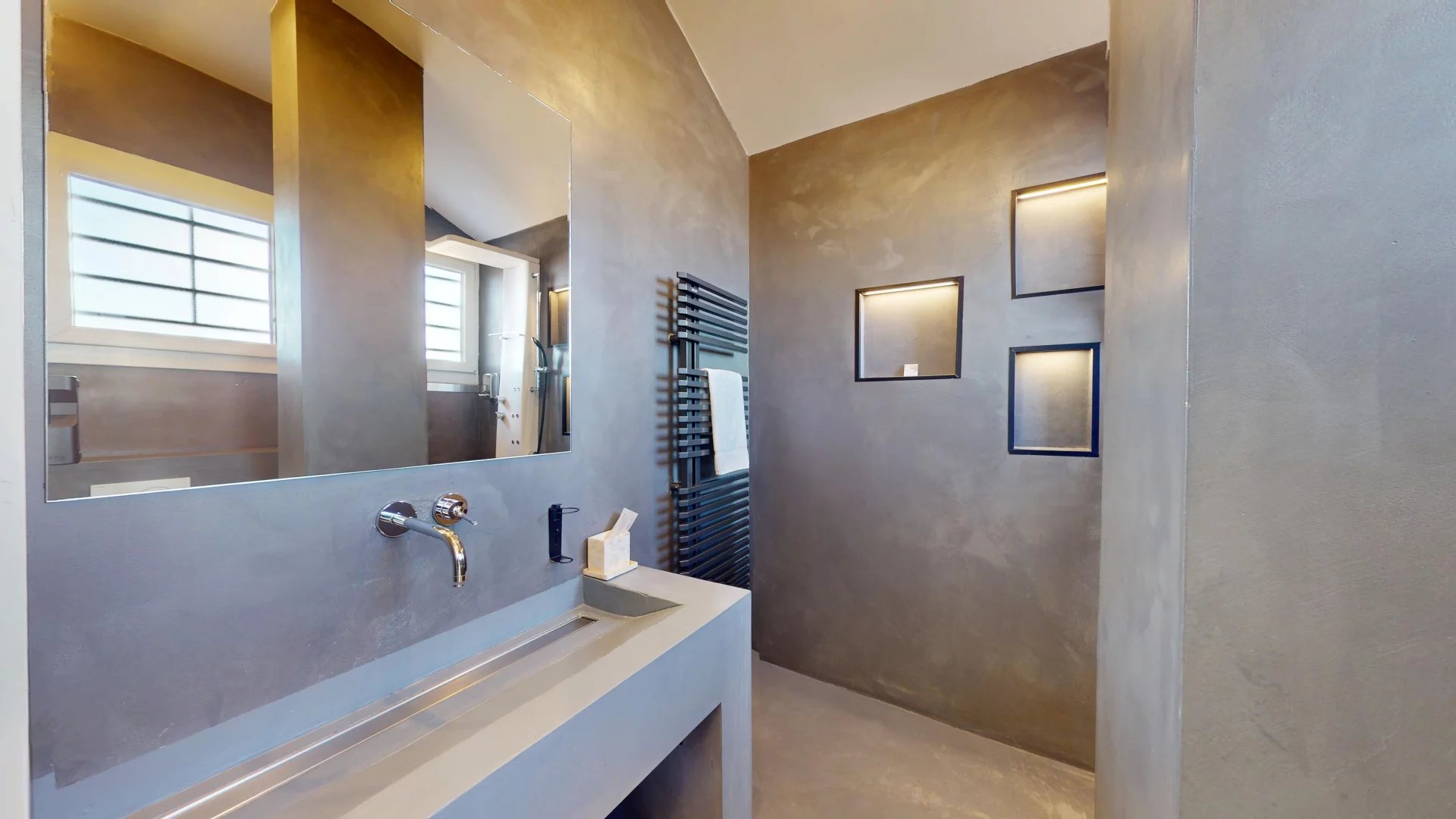 Dès l’entrée, le ton est donné avec des volumes généreux, une lumière omniprésente et une atmosphère singulière. Ce bien atypique conjugue charme et modernité dans un cadre privilégié.